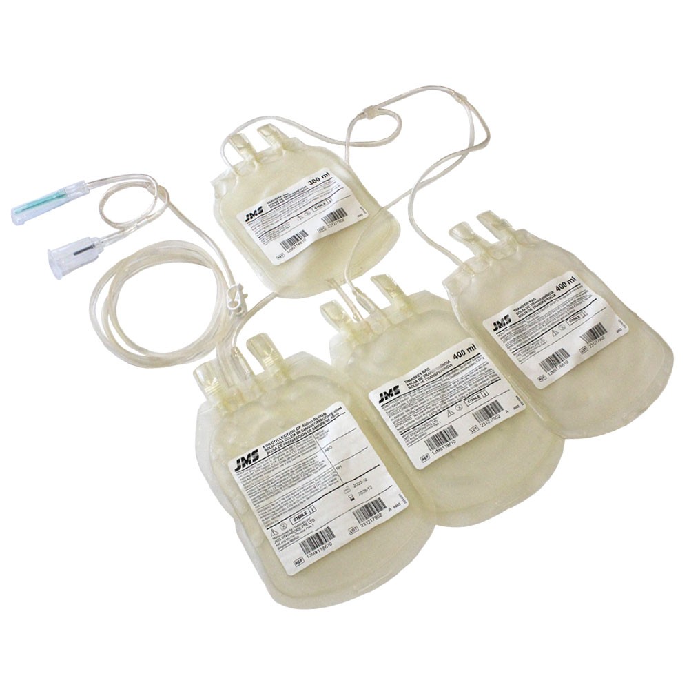 El sistema CPD-SAGM de JMS , consiste en una bolsa primaria que contiene solución anticoagulante CPD y una bolsa satélite que contiene solución para conservación de glóbulos rojos SAGM (salina-adenina-glucosa-manitol).
