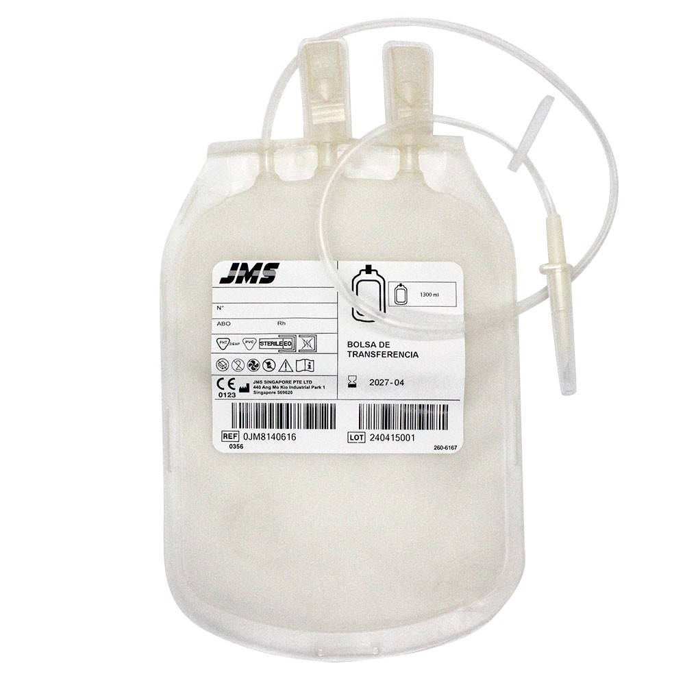 La bolsa de transferencia de sangre de JMS es un dispositivo médico diseñado para la transferencia segura de sangre y productos hemáticos entre diferentes bolsas o sistemas de almacenamiento.