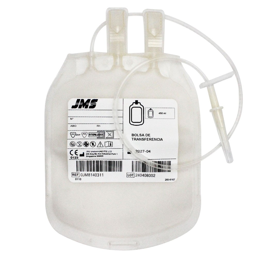 La bolsa de transferencia de sangre de JMS es un dispositivo médico diseñado para la transferencia segura de sangre y productos hemáticos entre diferentes bolsas o sistemas de almacenamiento.